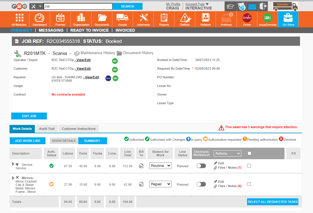 With the i2i module as the customer you can receive requests from workshops for the approval of costs. Once the job is completed and approved, the jobsheet can then be invoiced. This allows all parties to track the process within the r2c portal in real-time.