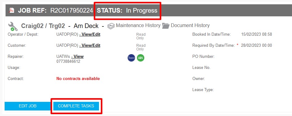 To complete a job, first set the jobsheet status to In Progress, this action will then show the COMPLETE TASKS button for non-digital tasks.