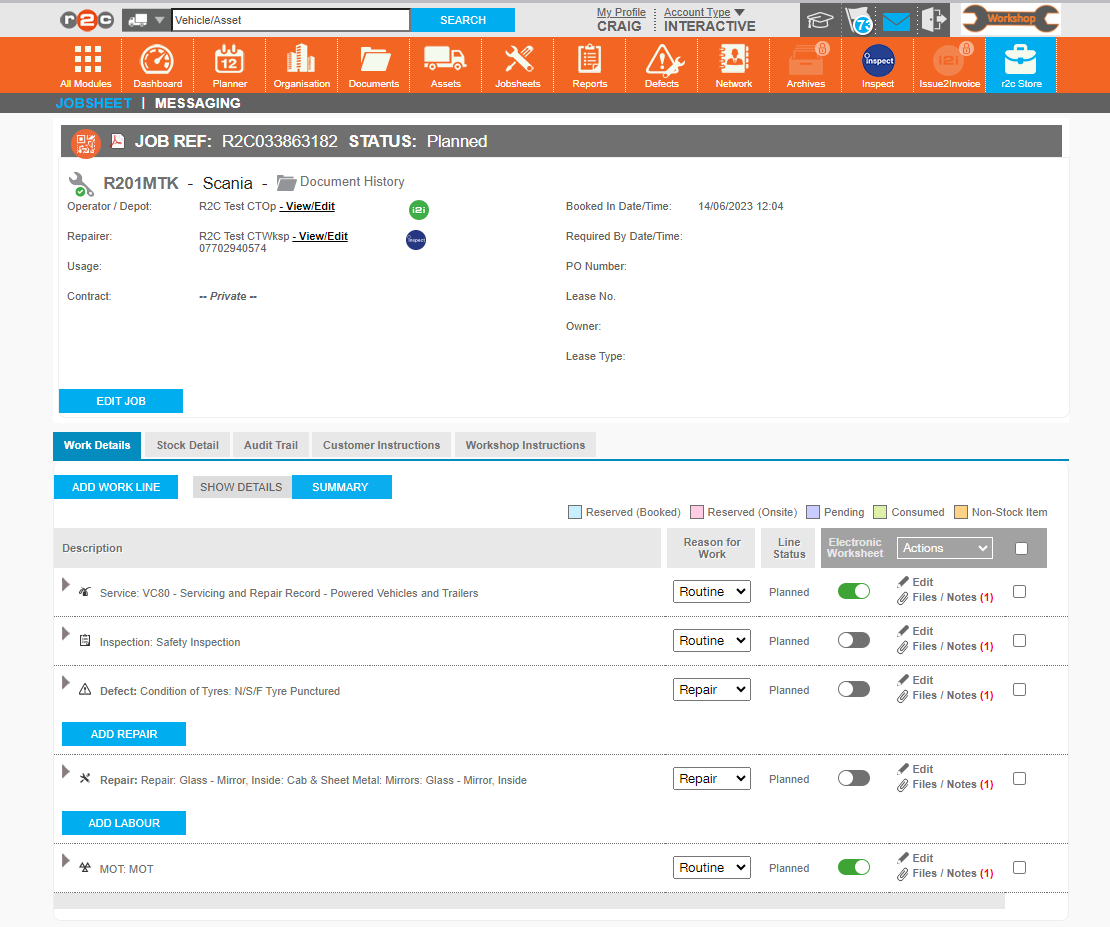 MOT inspections can be done in inspect or converted to a non-digital line using he Toggle. See the MOT Jobs guide for more details.