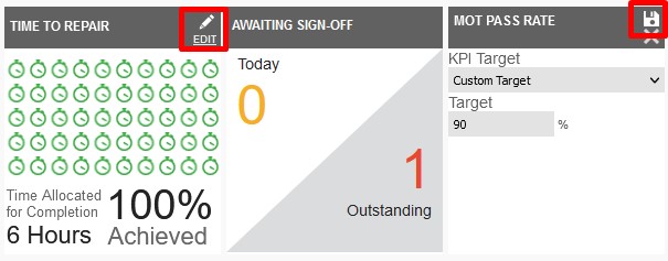 Note: Selecting this tile will expand the tile to include the detail behind the result. Editing this tile will allow the user to customise the KPI target.