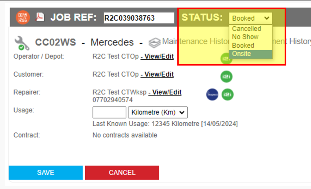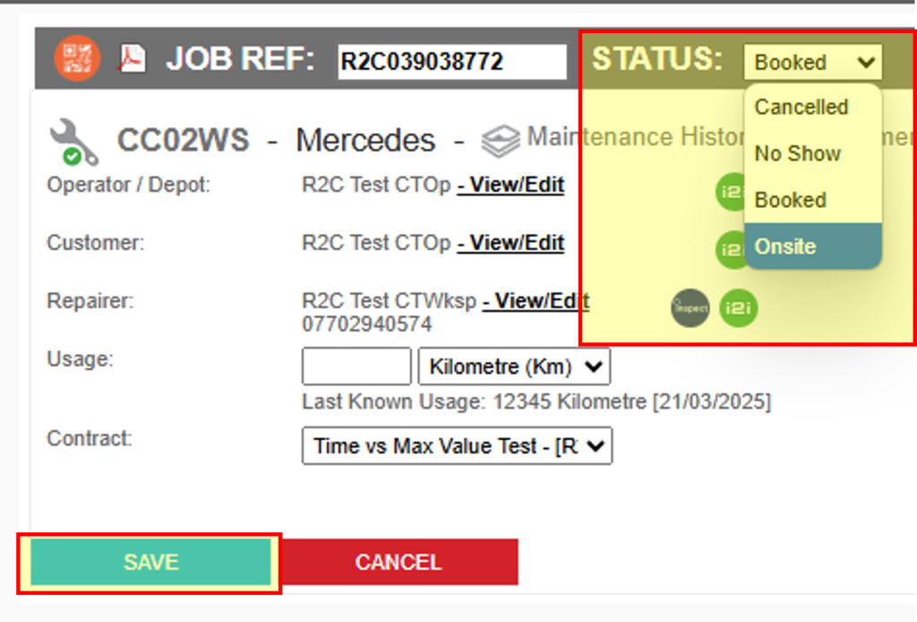 To change a Job status, first click ‘edit job’ and then from the status drop down choose ‘Onsite’. Click ‘Save’ to update the job. Once Onsite, digital jobs will show in Inspect.