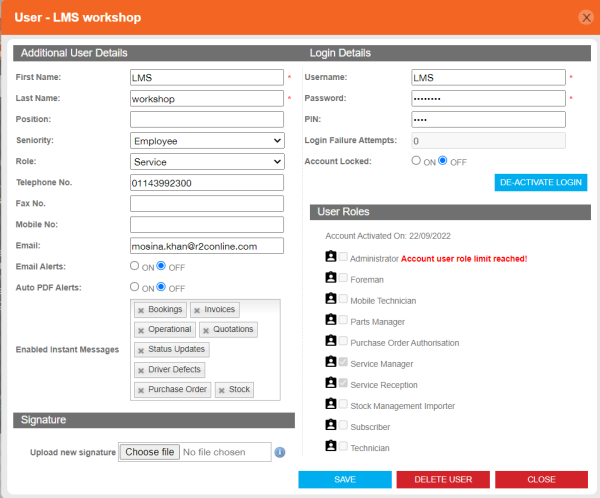 Any hand written signature can be uploaded to a users profile providing it fits within the size limits specified here. Signatures are only relevant to technicians’ and foremen profiles.