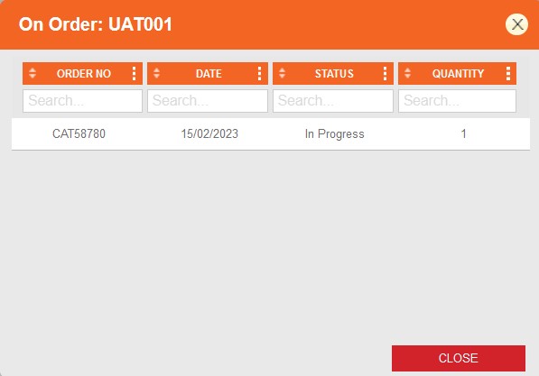 The on order popup provides the ability to navigate directly to the PO which needs to be completed before moving to the next step. See Processing and Completing PO's