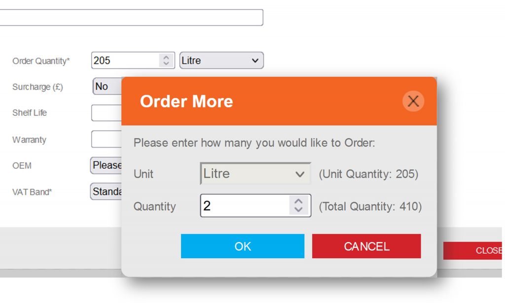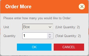 The order more popup will auto fill with the default quantity, this can be amended here.