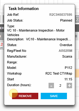 Allocated tasks can be seen on the timeline. Click on a task to see more details or adjust the time taken to do the job.